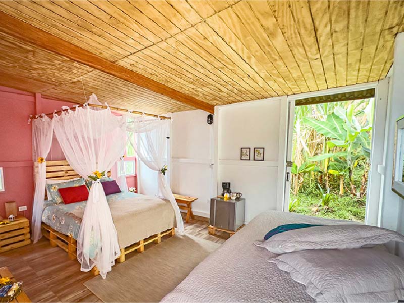 Sierra Alta Finca Boutique tiene 5 habitaciones, dos ubicadas en el kiosko principal con área social común y las otras 3 están en la zona externa, 1 kiosko y dos cabinas.